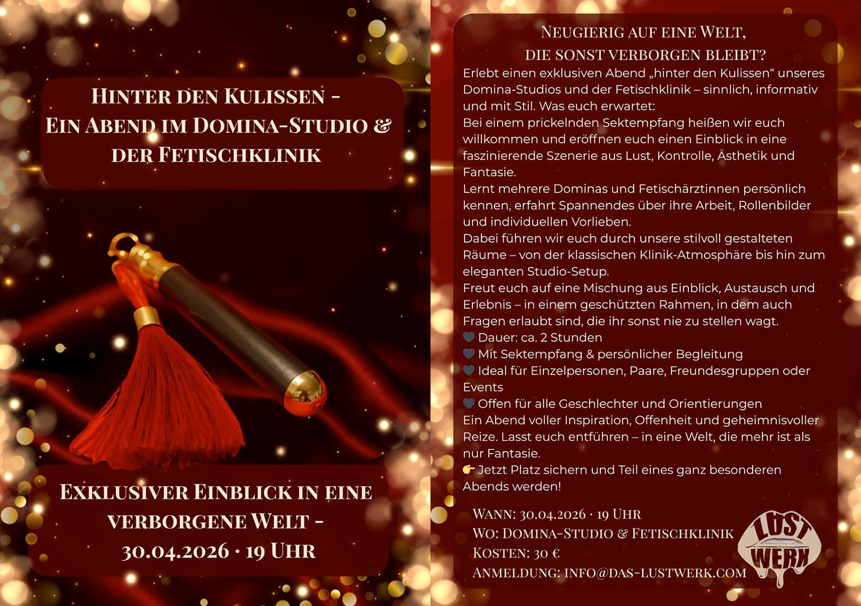 Anmeldung: info@das-lustwerk.com